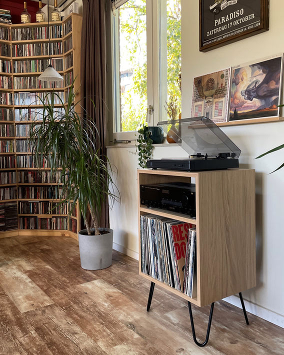 Het meubel is compact en neemt daardoor niet al te veel plek in, Terwijl je je lp's en platenspeler wel een speciale plaats kunt geven. Ideaal voor de beginnende verzamelaar, of om een selectie van je beste albums in je woonkamer te zetten.